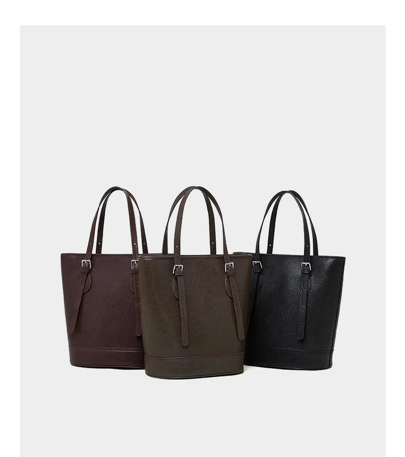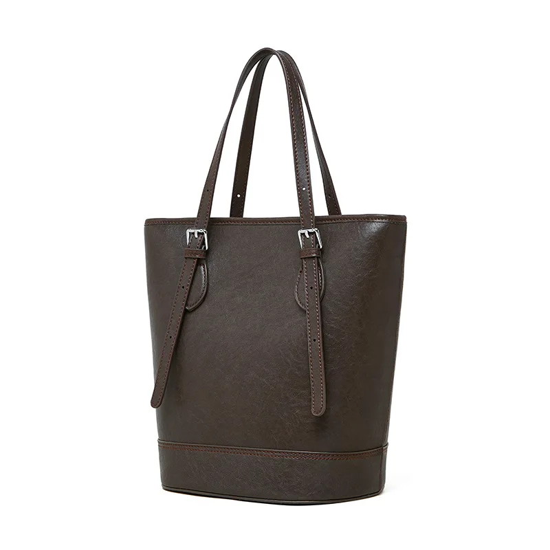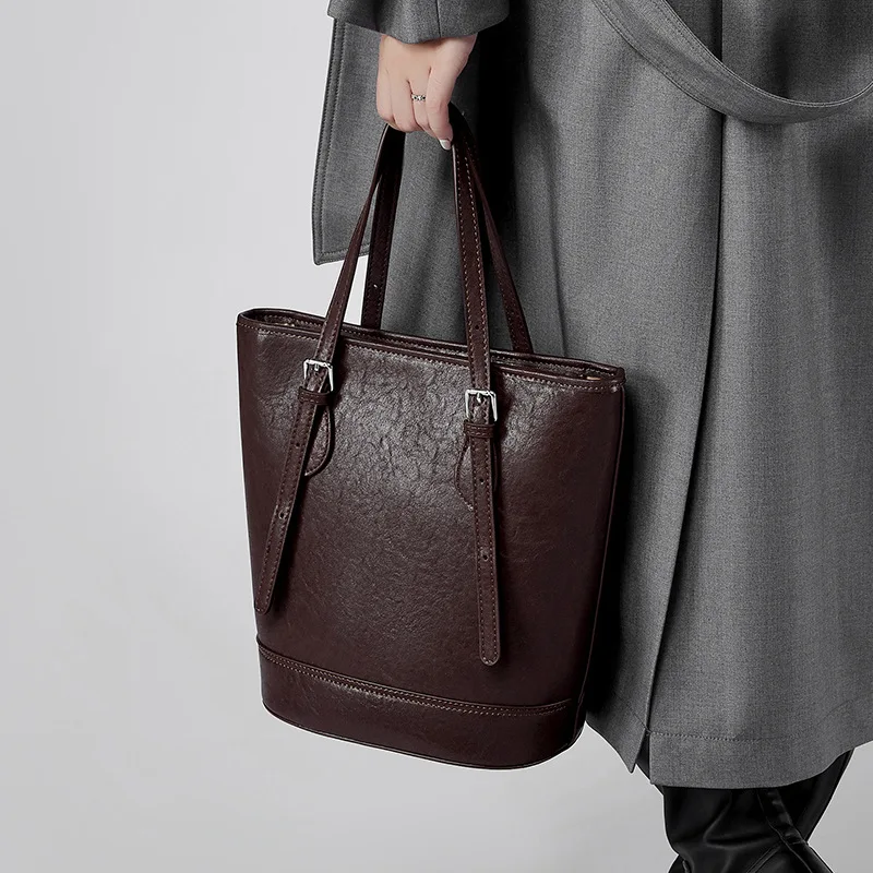 2026 Women's Genuine Leather Single Shoulder Vintage Style Bucket Bag New Style Waterproof Underarm Fashion Accessory